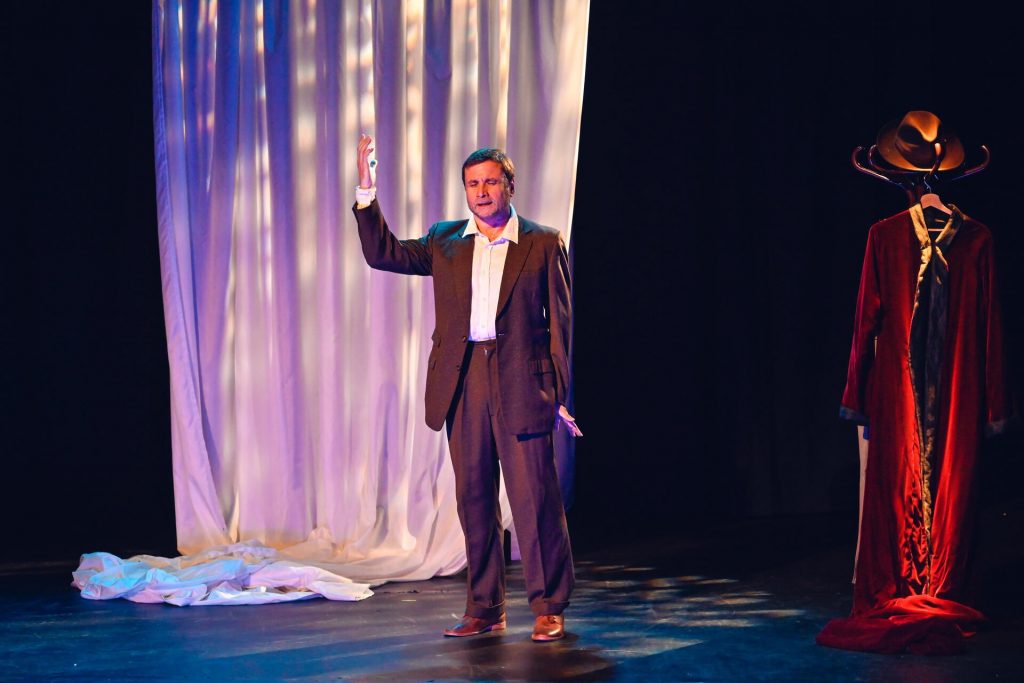 Dans cette pièce biographique qu’il est une prouesse de porter à la scène en 1h20, les ellipses bien choisies servent le parcours hors-normes et agité de cet homme qui va, vient, revient, parcourt, transcrit, recommence.