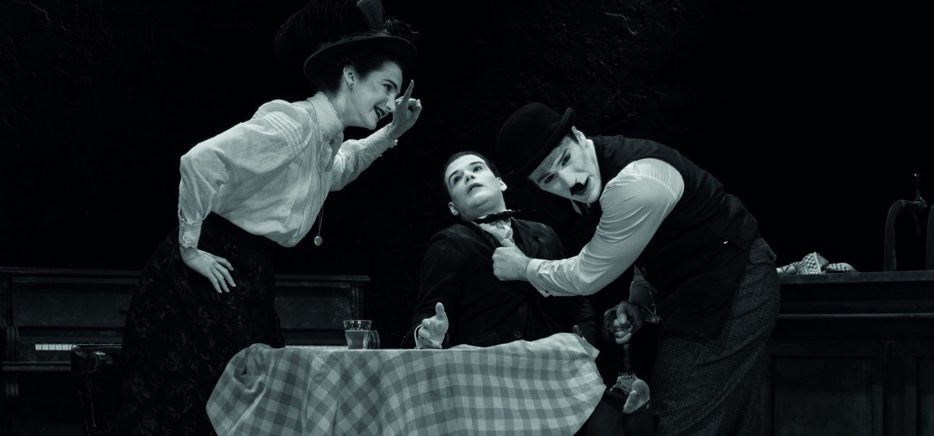Une pièce entièrement en noir et blanc — maquillages, costumes, décors, lumières — pour évoquer la jeunesse de Charlie Chaplin. Une idée folle, presque inconcevable… et pourtant, sur scène, elle prend vie avec grâce. Dès les premières minutes, la magie opère : la salle devient pellicule, les corps des comédiens sont des ombres mouvantes, et le silence – ce langage que Chaplin a tant aimé – envahit l’espace.